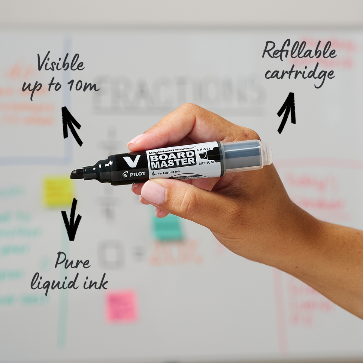 The PILOT V Board Master Whiteboard Marker is a cutting-edge, refillable whiteboard marker with a medium tip, designed to unleash your creativity and deliver bold, vibrant writing with precision.