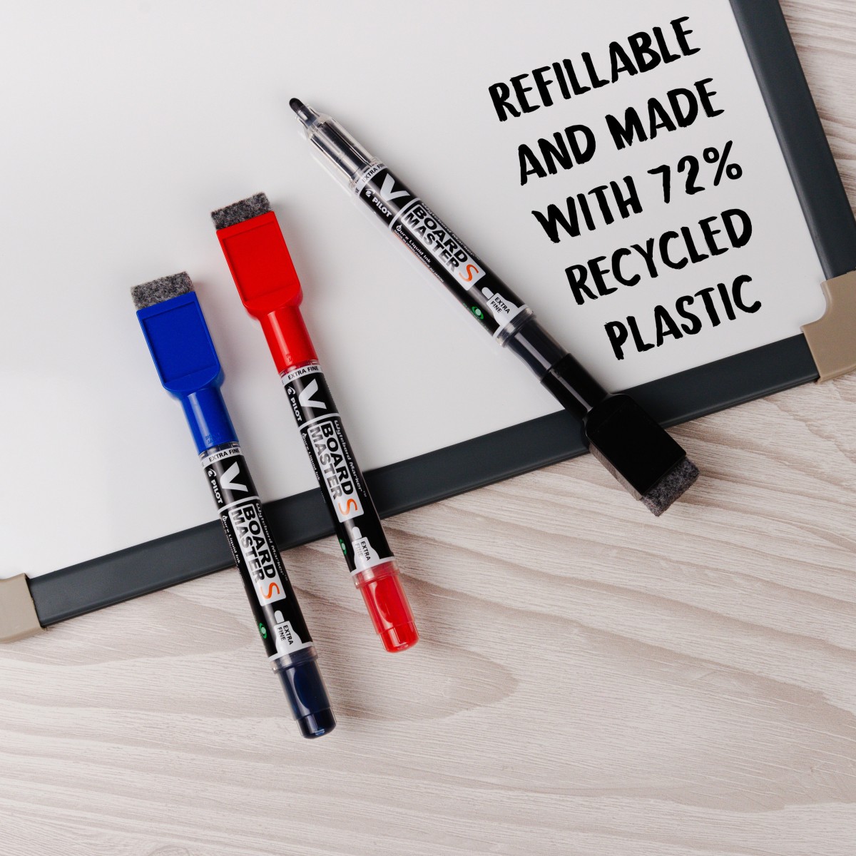 PILOT BegreeN V Board Master is a refillable whiteboard marker to empower your imagination and help you leave your mark boldly and vibrantly. The slim body encourages ease of use for all hand sizes and features a built-in eraser and magnetic cap for all-in-one whiteboard use.