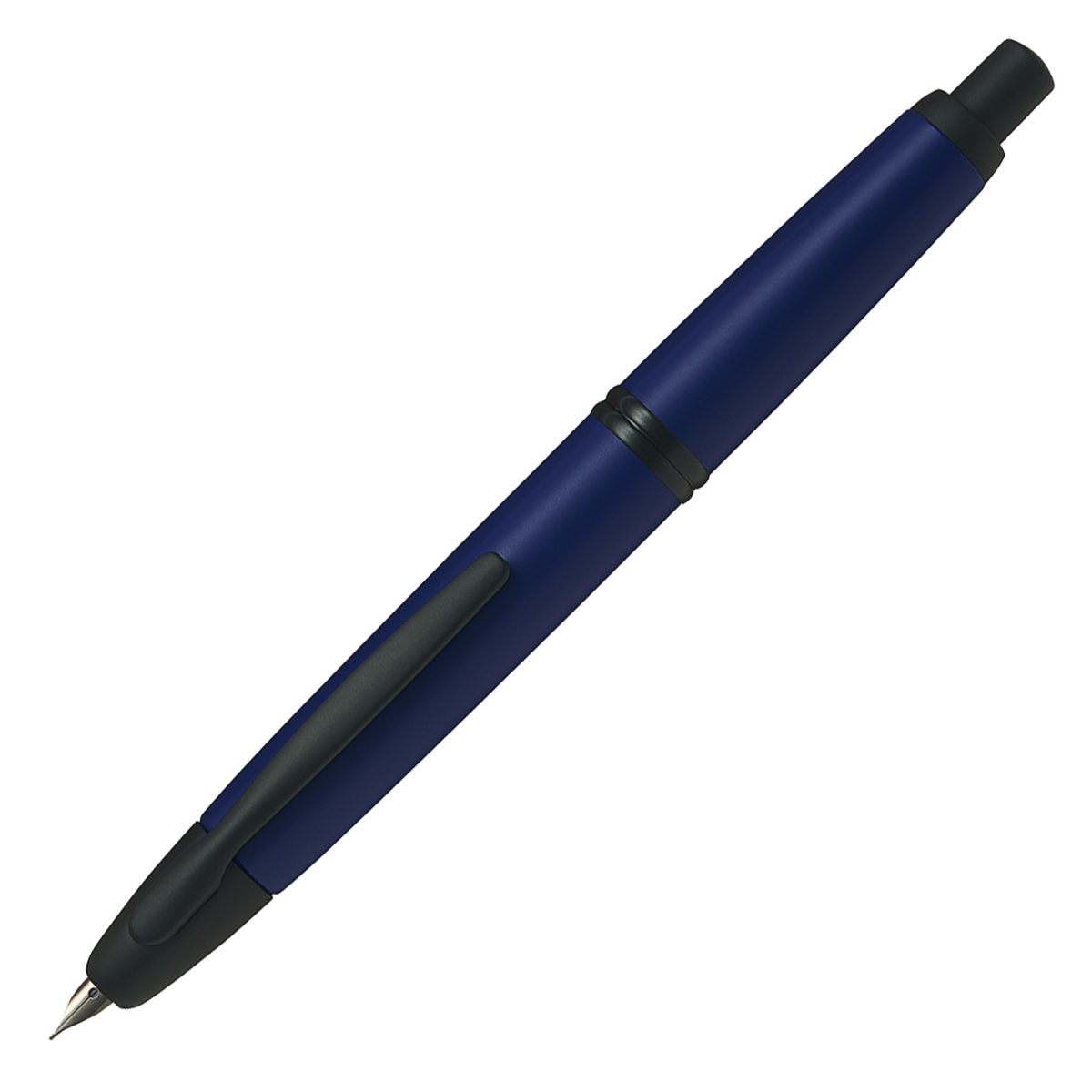 This exceptional masterpiece houses a mechanism of unmatched precision, allowing the nib to retract seamlessly into the barrel, a feature that embodies both practicality and elegance. The PILOT in-house 18K gold nib features black ion-plating, paired beautifully with the black matte trim accents, against a soft-touch Matte Navy or a high-gloss Piano White brass barrel.